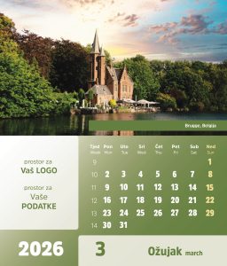 Vaš logotip treba biti prisutan, ali ne pretjerano dominantan. Najbolje pozicije su gornji ili donji dio stranice gdje neće ometati preglednost datuma. Koristite korporativne boje kako bi kalendar bio prepoznatljivo povezan s vašim brendom.