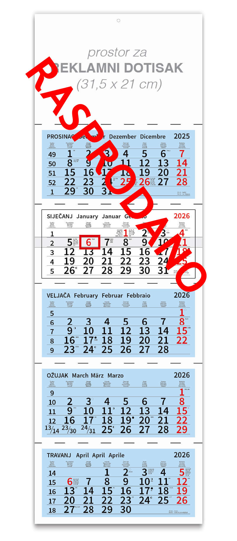 Predstavljamo Peterodjelni plavi kalendar – kvalitetan zidni poslovni kalendar koji kombinira preglednost, profesionalan izgled i mogućnost brendiranja.