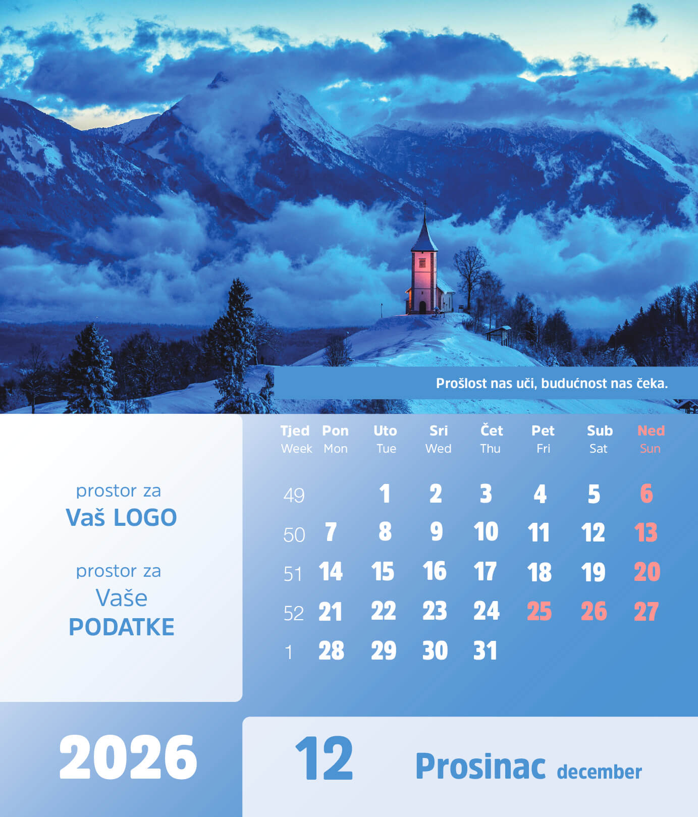 Vaš detalj – vaša prepoznatljivost – u cijenu je uračunat dotisak vašeg logotipa i/ili podataka na svaku stranicu kalendara, čime svaki list postaje vaš brendirani promotivni materijal.