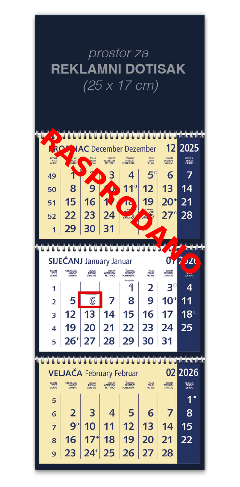 Ako tražite kalendar koji kombinira estetiku, funkcionalnost i brendiranje, „Trodjelni plavi kalendar 3 spirale” je odličan izbor. Investirajte u proizvod koji ne samo da prati dane – nego i reprezentira profesionalnost vaše tvrtke svaki dan.